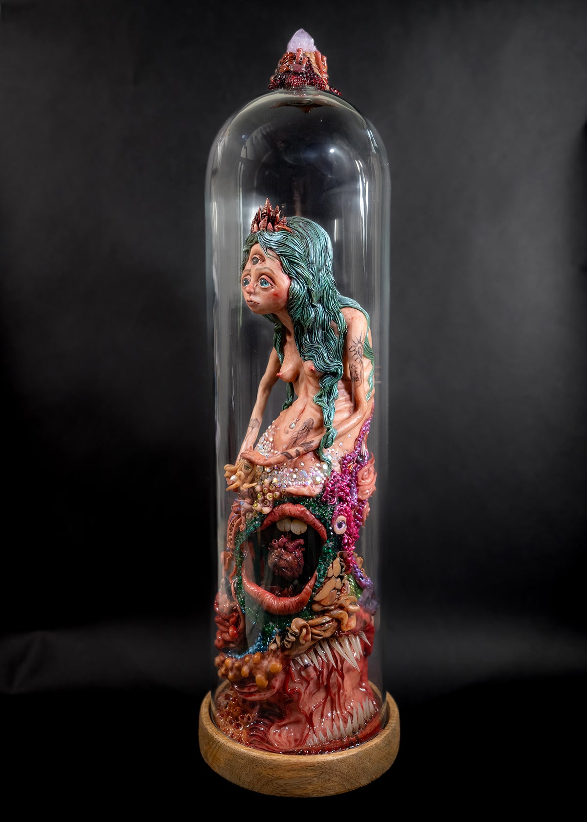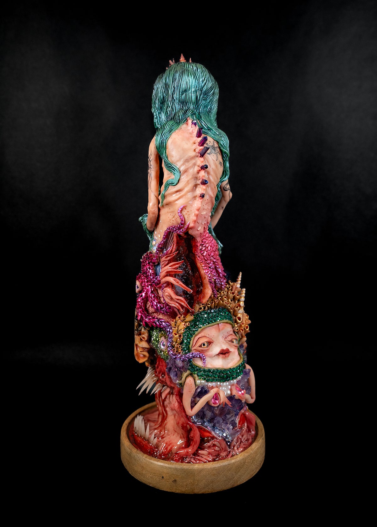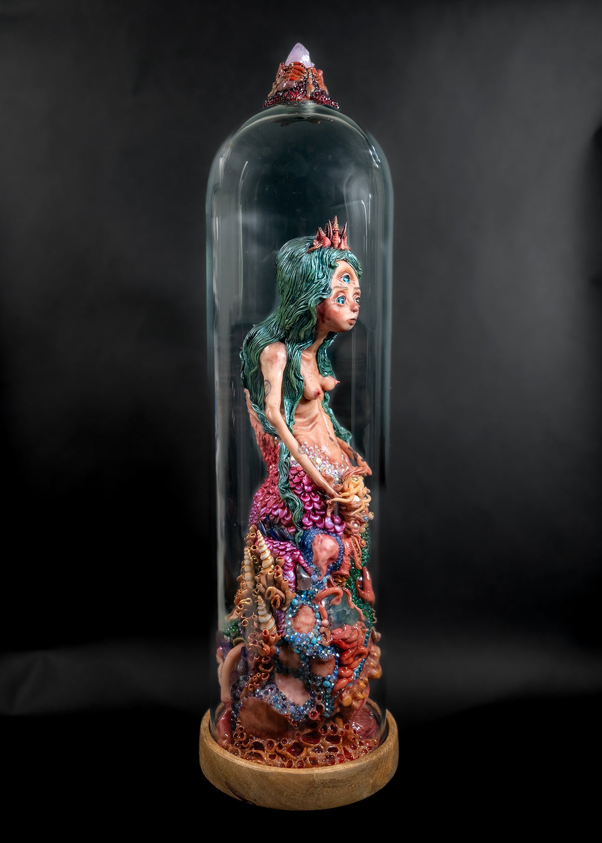 Polymer clay, glass, rhinestones, beads, resin, amethyst, fluorite, zircon, labradorite, freshwater pearls, seashells, acrylic paint, mica powders, 2024