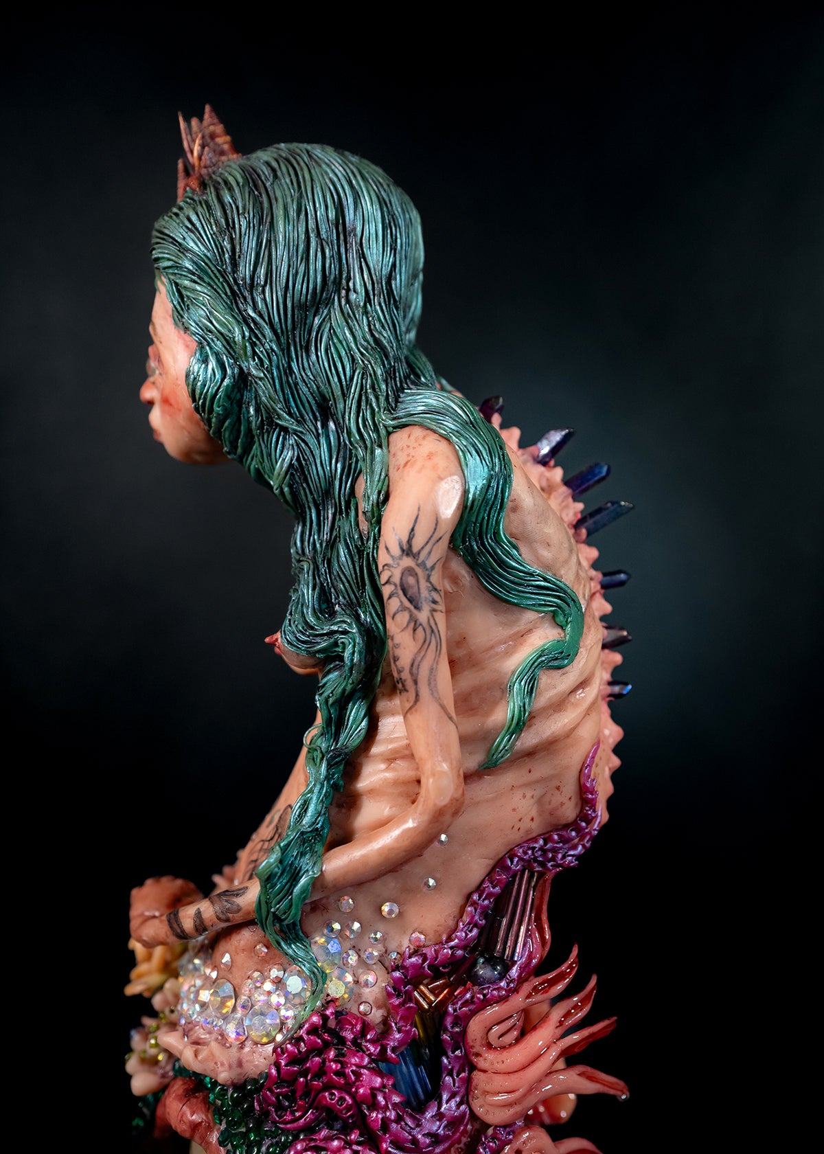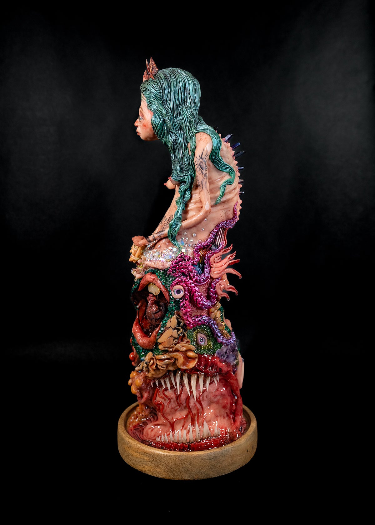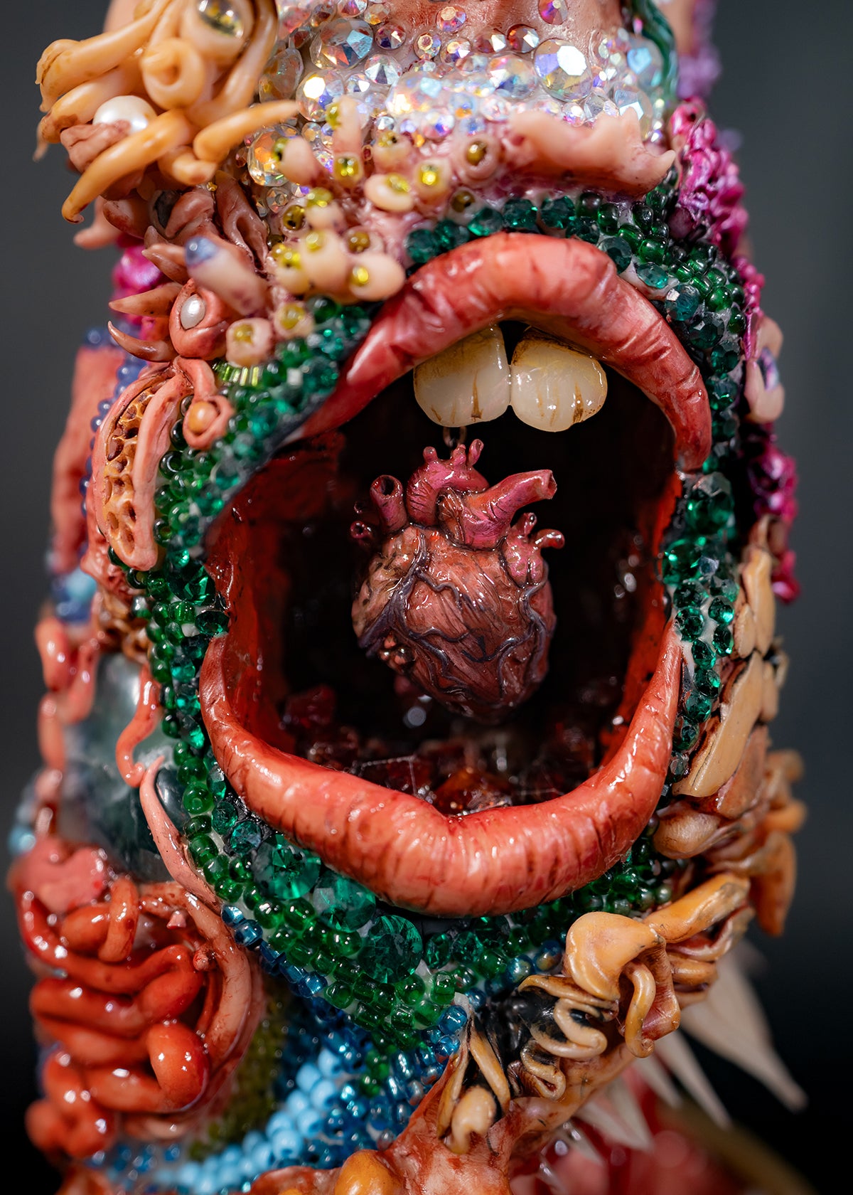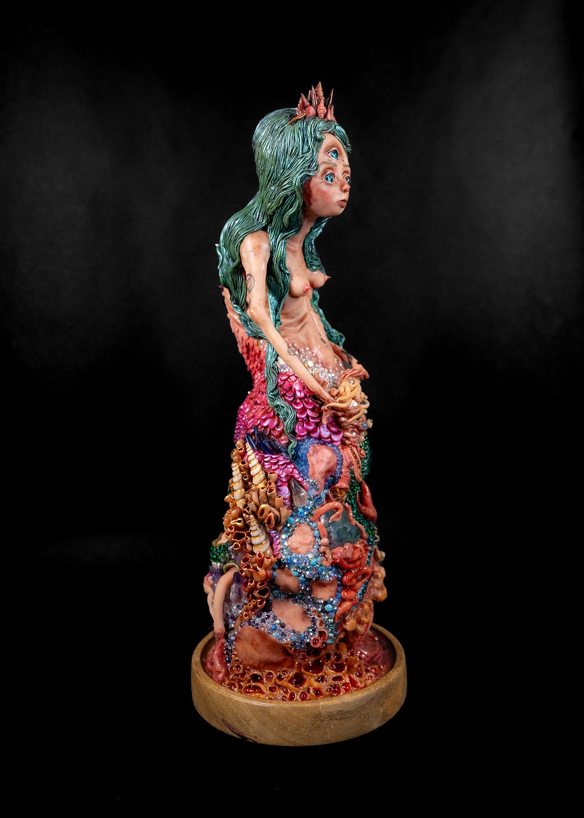Polymer clay, glass, rhinestones, beads, resin, amethyst, fluorite, zircon, labradorite, freshwater pearls, seashells, acrylic paint, mica powders, 2024